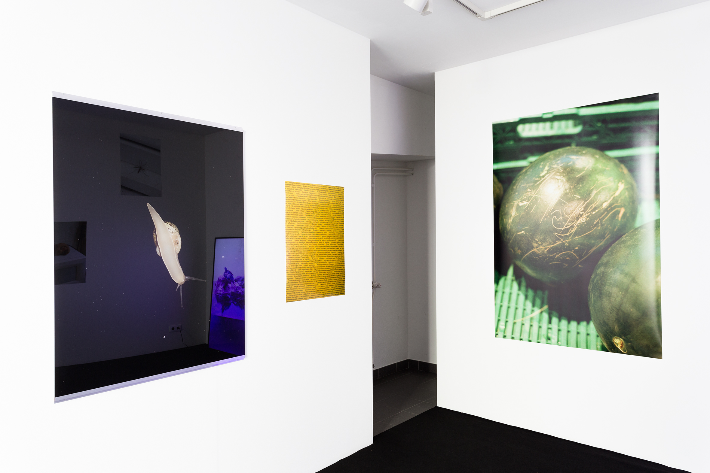 Monades materializes the itinerary of a gaze that alternate between micro and a macrocosm. In a walk from the earth’s surface to the underground, it evokes both the common world through a public square surrounded by plane trees above and under it a space where fantasy, projections and weird associations are allowed. The photographs, videos and sound sculptures are heterogeneous fragments finding their roots in the same idea : human models nature and animals as desired.